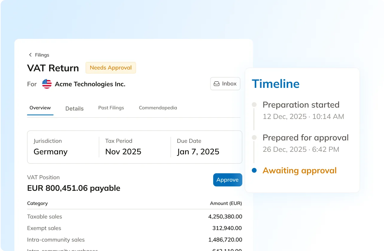 Commenda unifies your compliance data across jurisdictions — so your finance and legal teams share one accurate, real-time view of filings, renewals, and obligations worldwide. Audit-ready all the time.