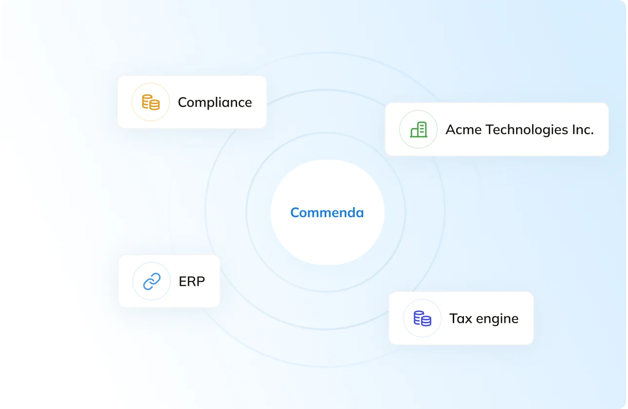 Your tax engine should be able to talk to your ERP, and both should be able to talk to your entity and tax management. Commenda makes this as easy as a drag and drop.